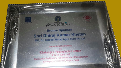 Feliciation of Mr. Dhiraj Khetan, Director SASMPL at International Conference on "Challanges Facing Indian Cotton", 9th & 10th April-2013
